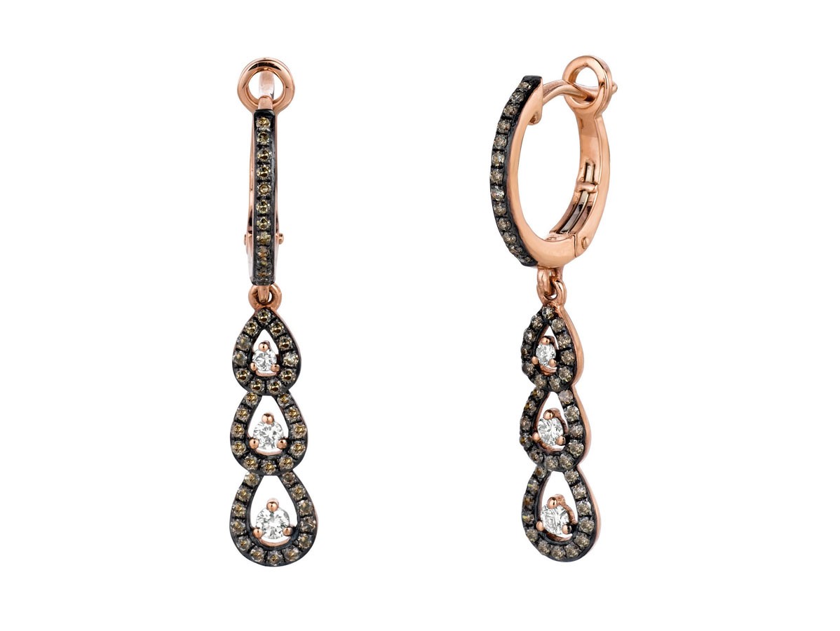 0.46cts Chocolate Diamond & 0.18cts White Diamonds 14k Rose Gold Earrings