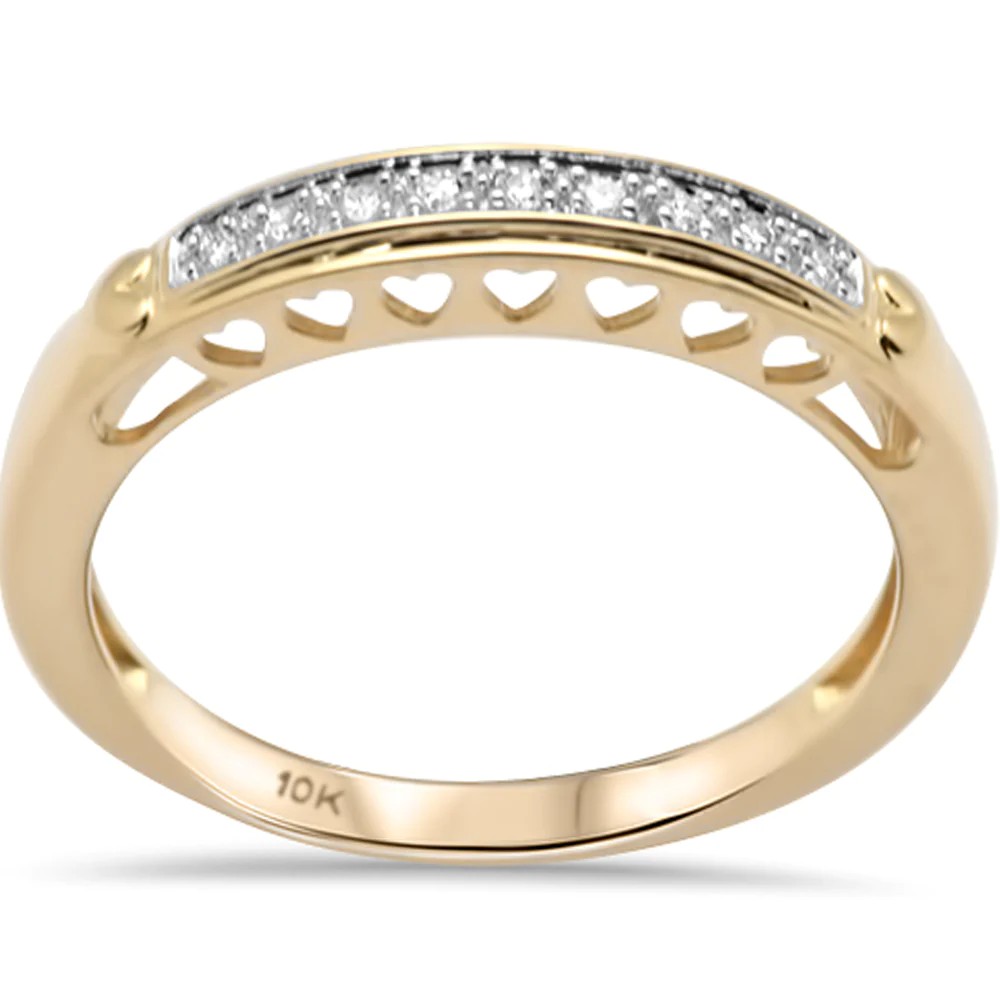 .04ct G SI 10K Yellow Gold Diamond Heart Filigree Ring Band