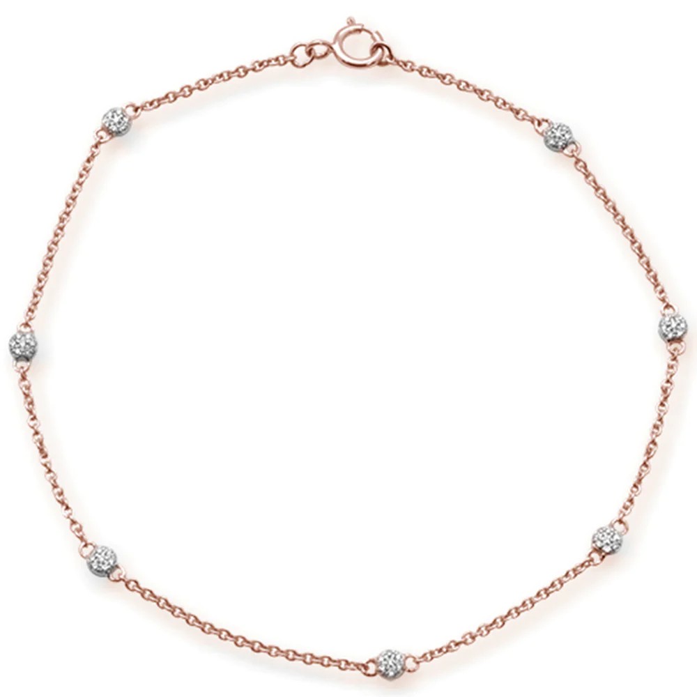 .09ct 14kt Rose Gold Diamond By Yard Station Bracelet 7" Long Adj