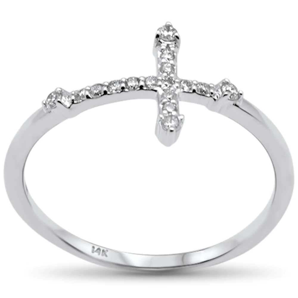 .11ct G SI 14K White Gold Diamond Sideways Cross Ring Band Size 6.5