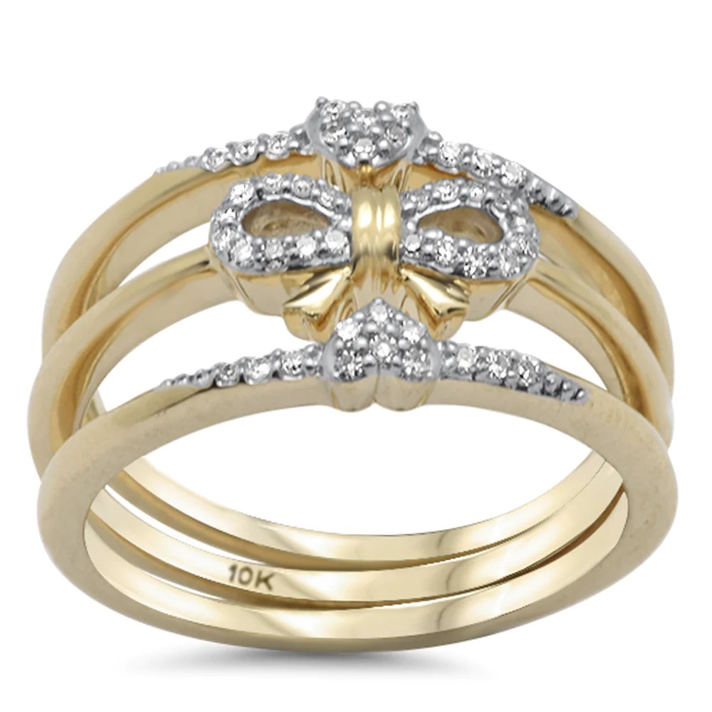 .14ct G SI 10K Yellow Gold Diamond Ribbon & Hearts Design Triple Ring Size 6.5