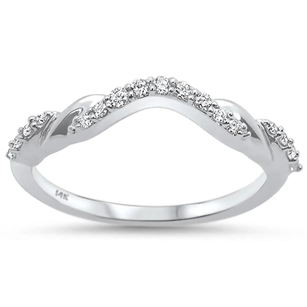 .16ct 14k White Gold Stackable Curved Accent Band Diamond Rinze 6.5
