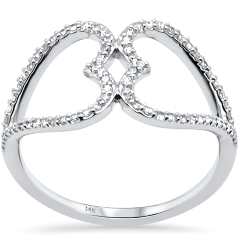 .19ct G SI 14K White Gold Diamond Two Hearts Style Ring Band Size 6.5