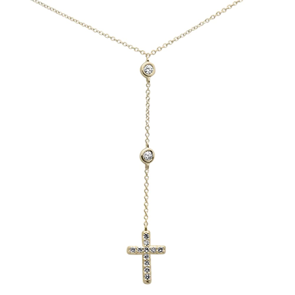 .21ct G SI 14K Yellow Gold Diamond Cross Drop Pendant Necklace 16+2" Ext