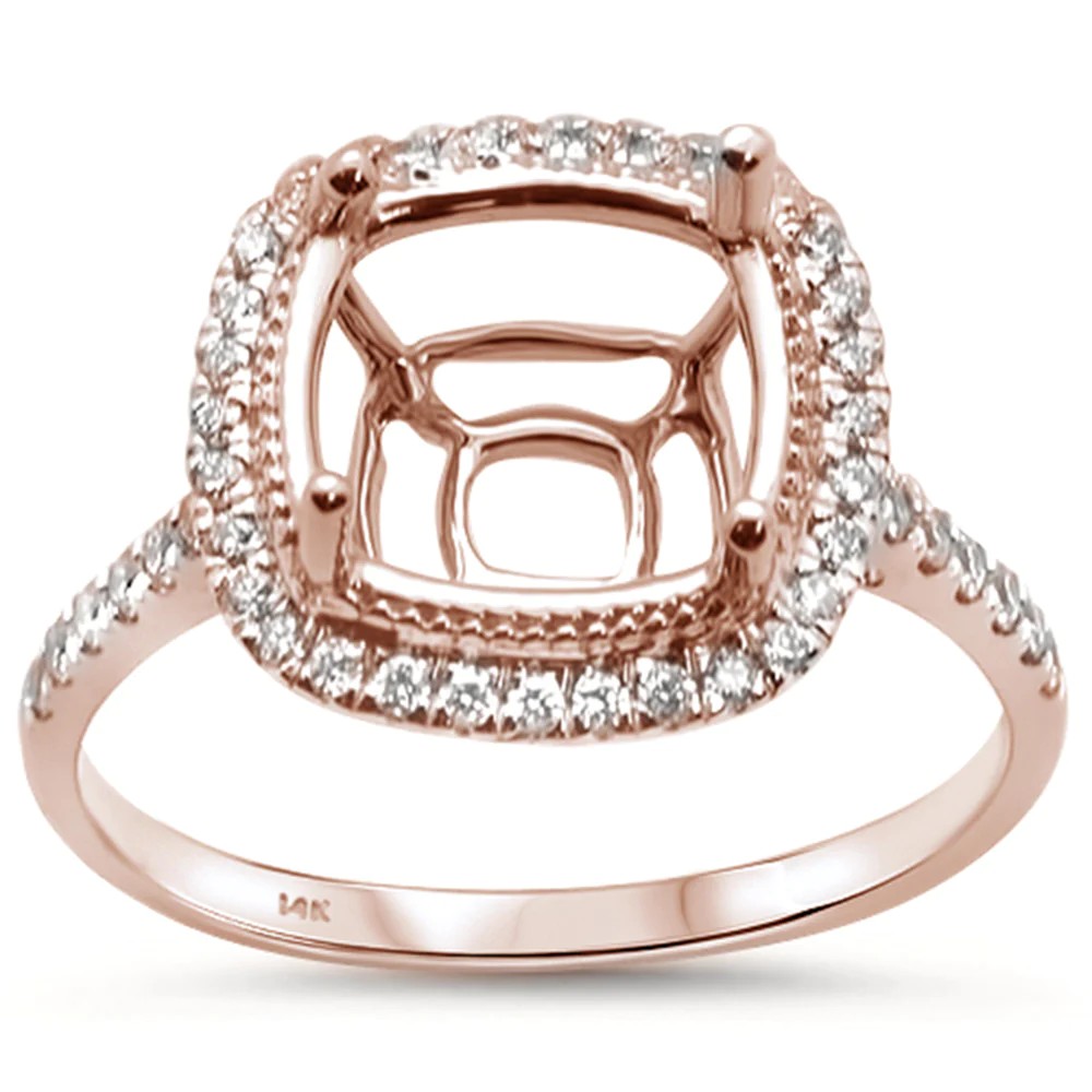 .27ct 14K Rose Gold Diamond Cushion Cut Semi Mount Ring Size 6.5