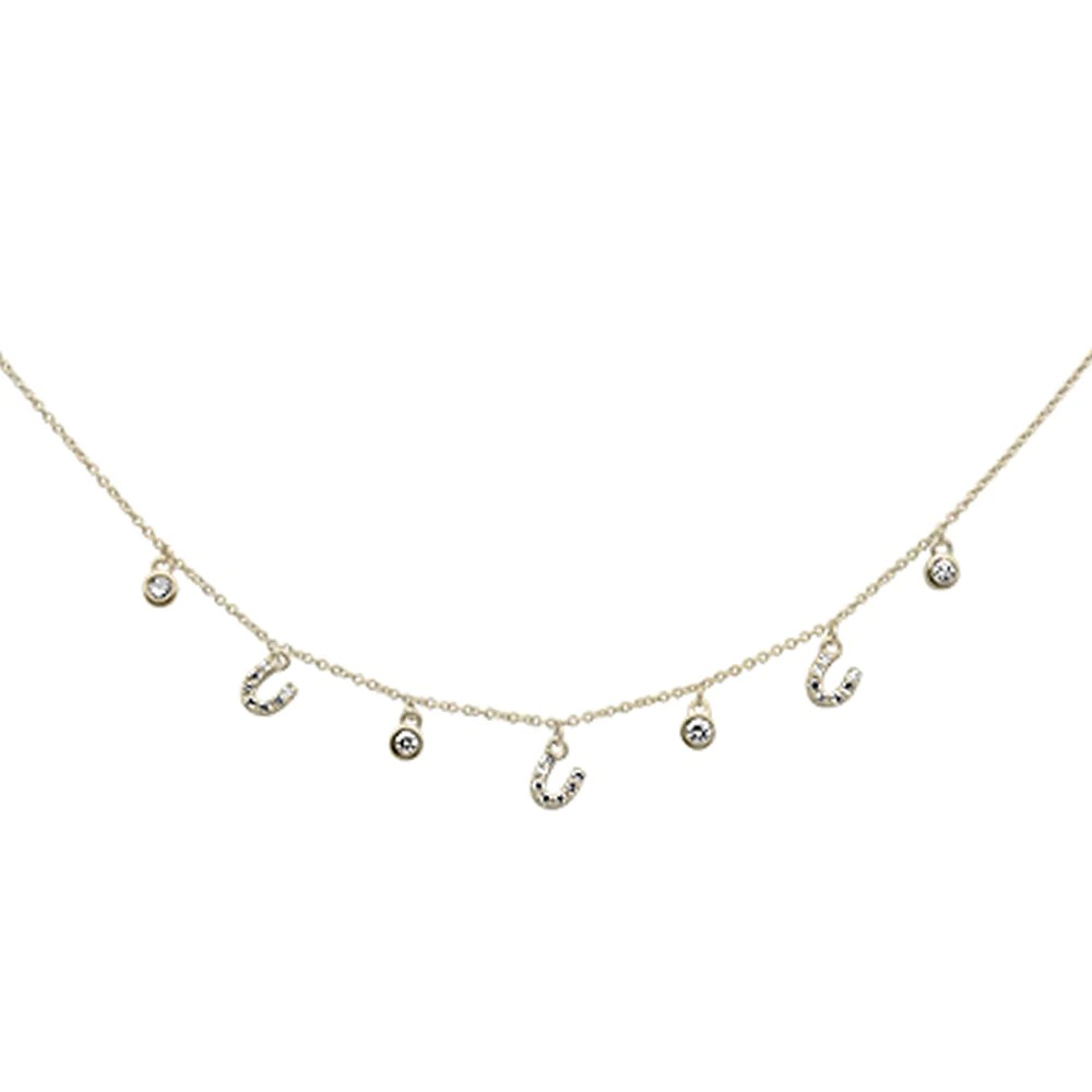 .32ct G SI 14K Yellow Gold Diamond Horsehoe Pendant Necklace 16" + 2" Long