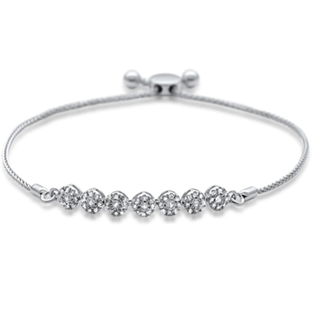 .33ct 14k White Gold Women's Adjustable Diamond Bola Bracelet