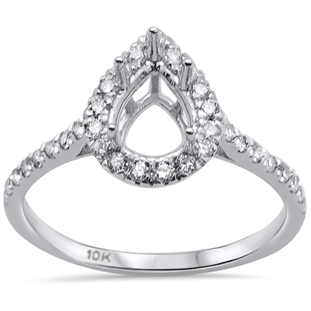 .34ct 10K White Gold Pear Teardrop Shape Diamond Semi Mount Ring Size 6.5