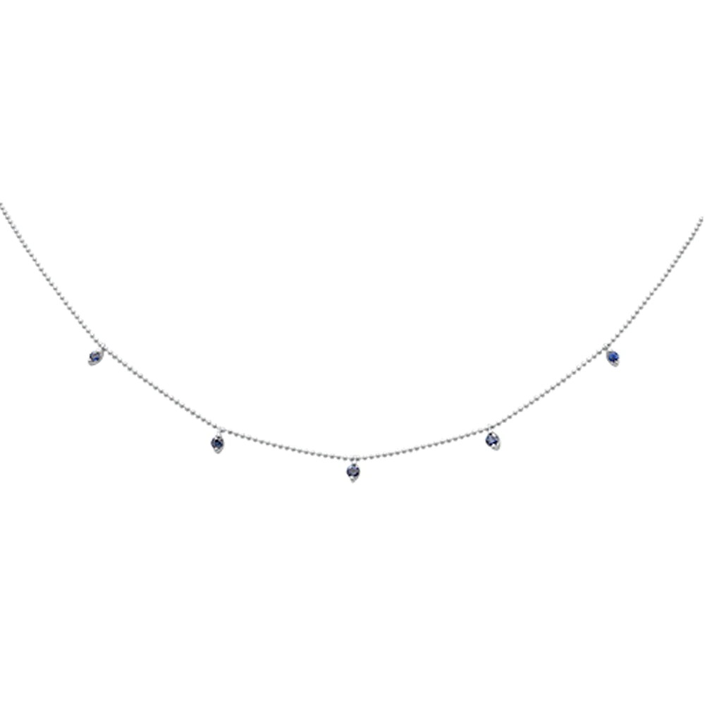 .34ct G SI 14K White Gold Blue Sapphire Gemstone Pendant Necklace 18" Long