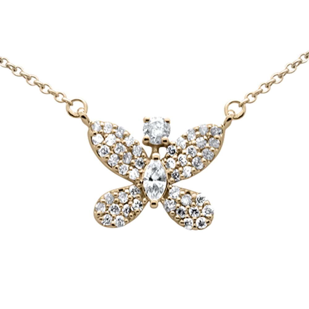 .36ct G SI 14K Yellow Gold Diamond Butterfly Pendant Necklace 18" Long