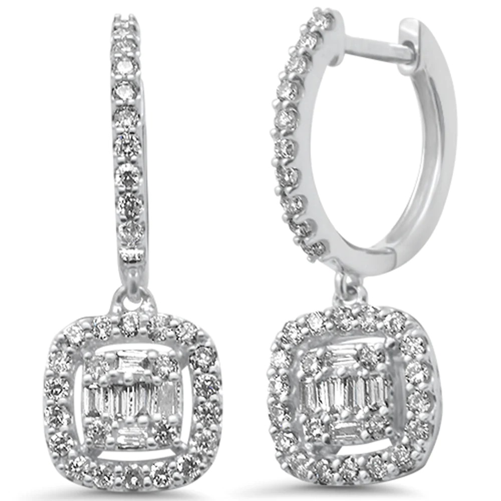 .49ct G SI 14K White Gold Diamond Cushion Shaped Drop Dangle Hoop Earrings