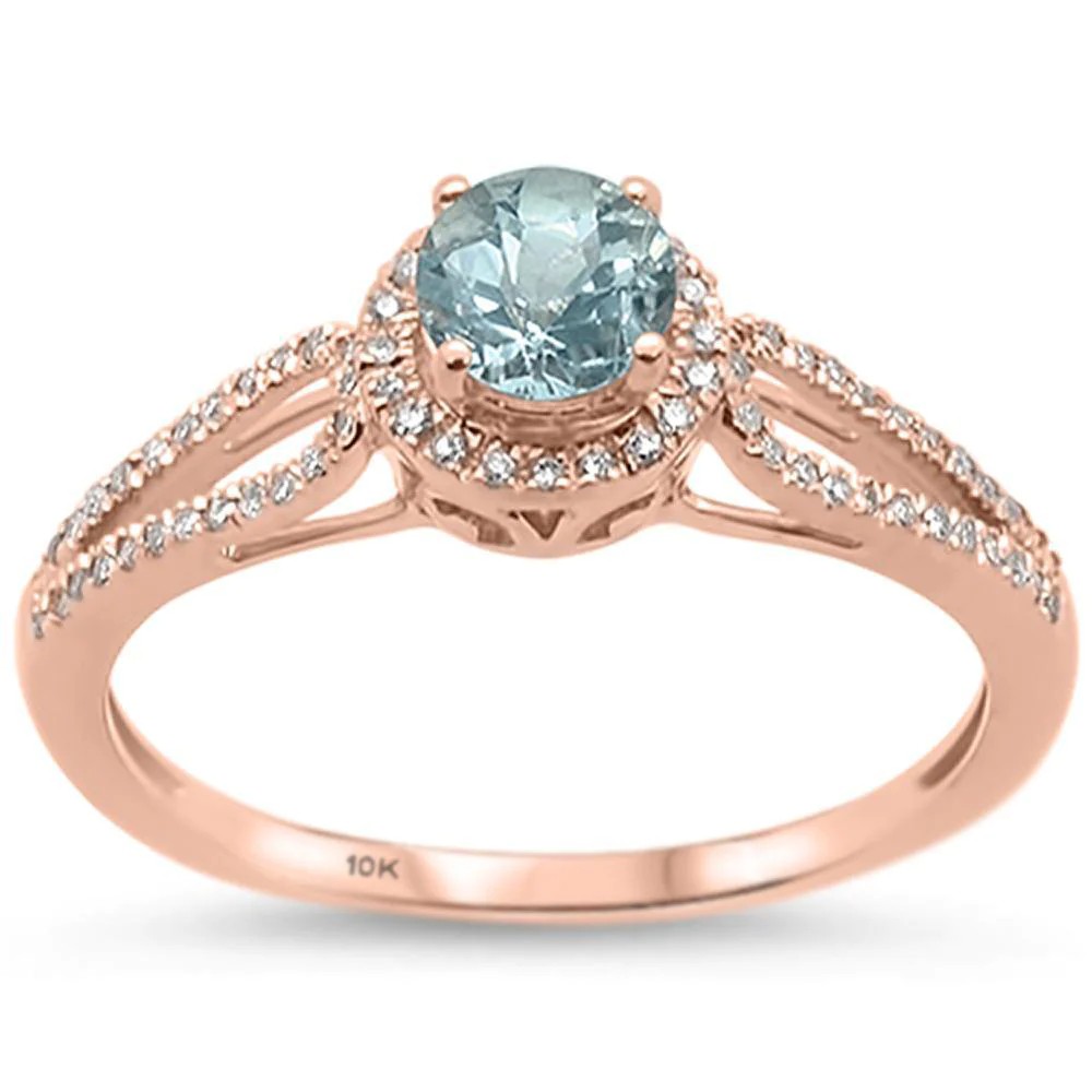 .56cts 10k Rose Gold Round Aquamarine & Diamond Ring