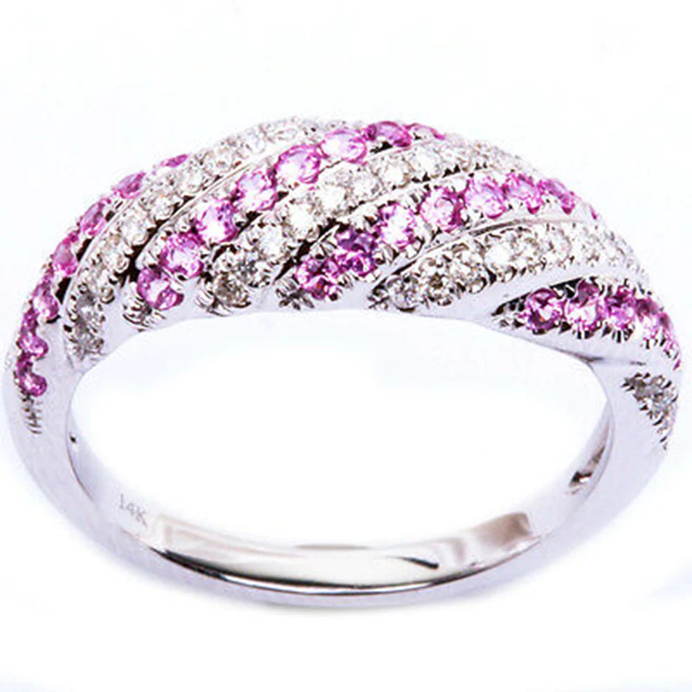 .59ct 14kt White Gold Pink Sapphire & Diamond Fine Gemstone Band Ring
