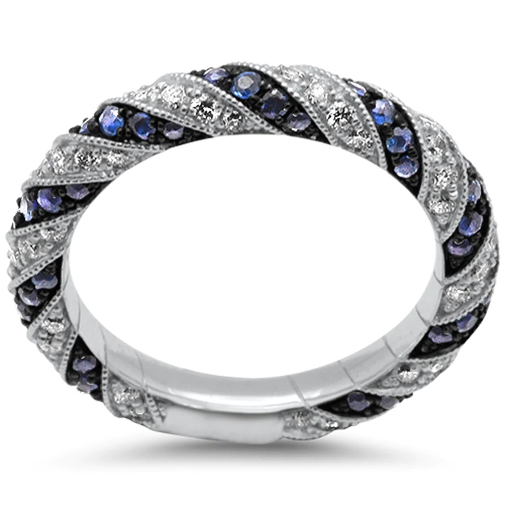 .62ct G SI 14K White Gold Blue Sapphire & Diamond Ring Band