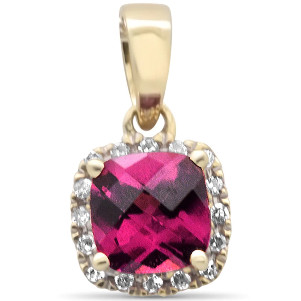 .67ct G SI 14K Yellow Gold Diamond & Cushion Rhodolite Gemstone Pendant