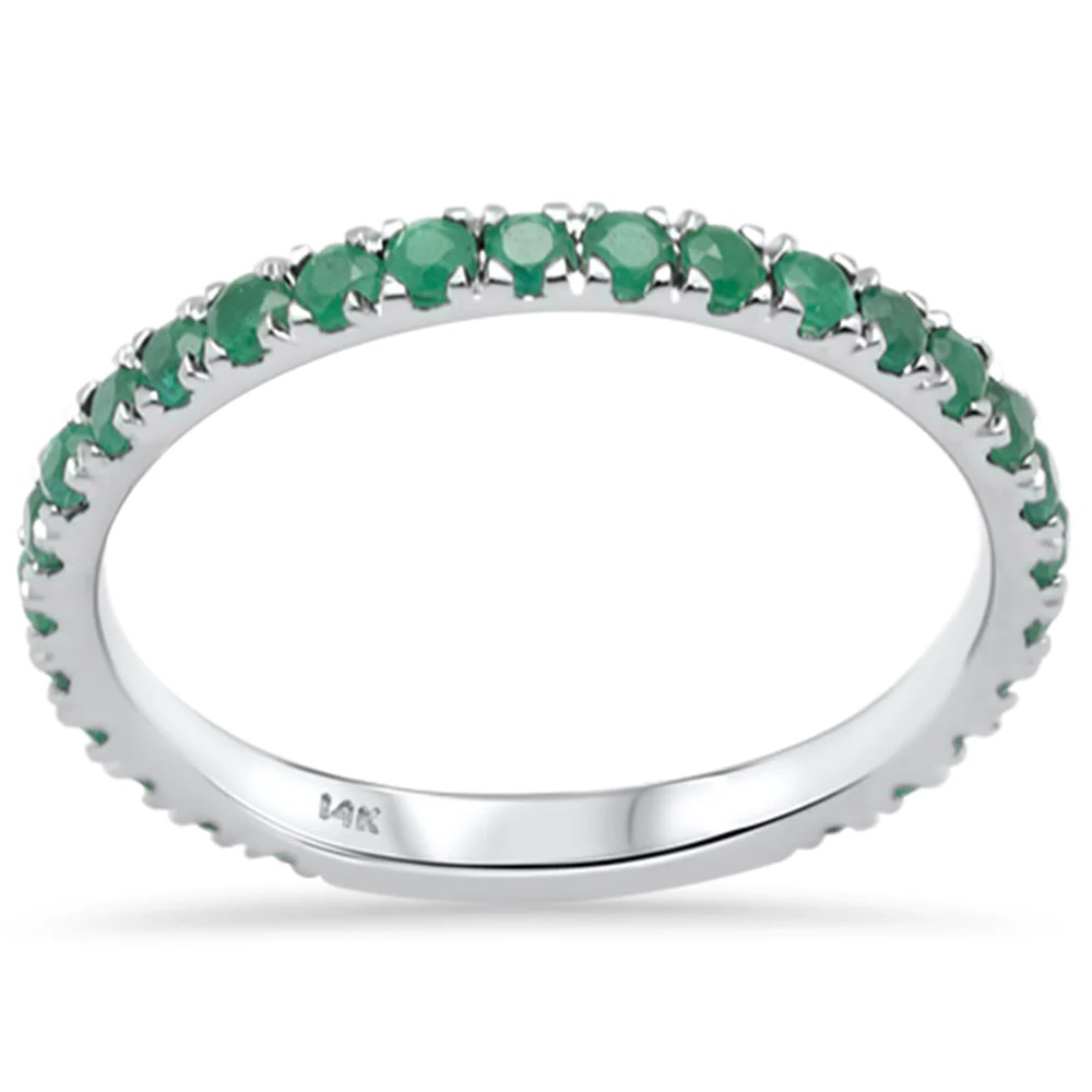 .70ct G SI 14K White Gold Natural Emerald Gemstone Ring Stackable Band Size 7