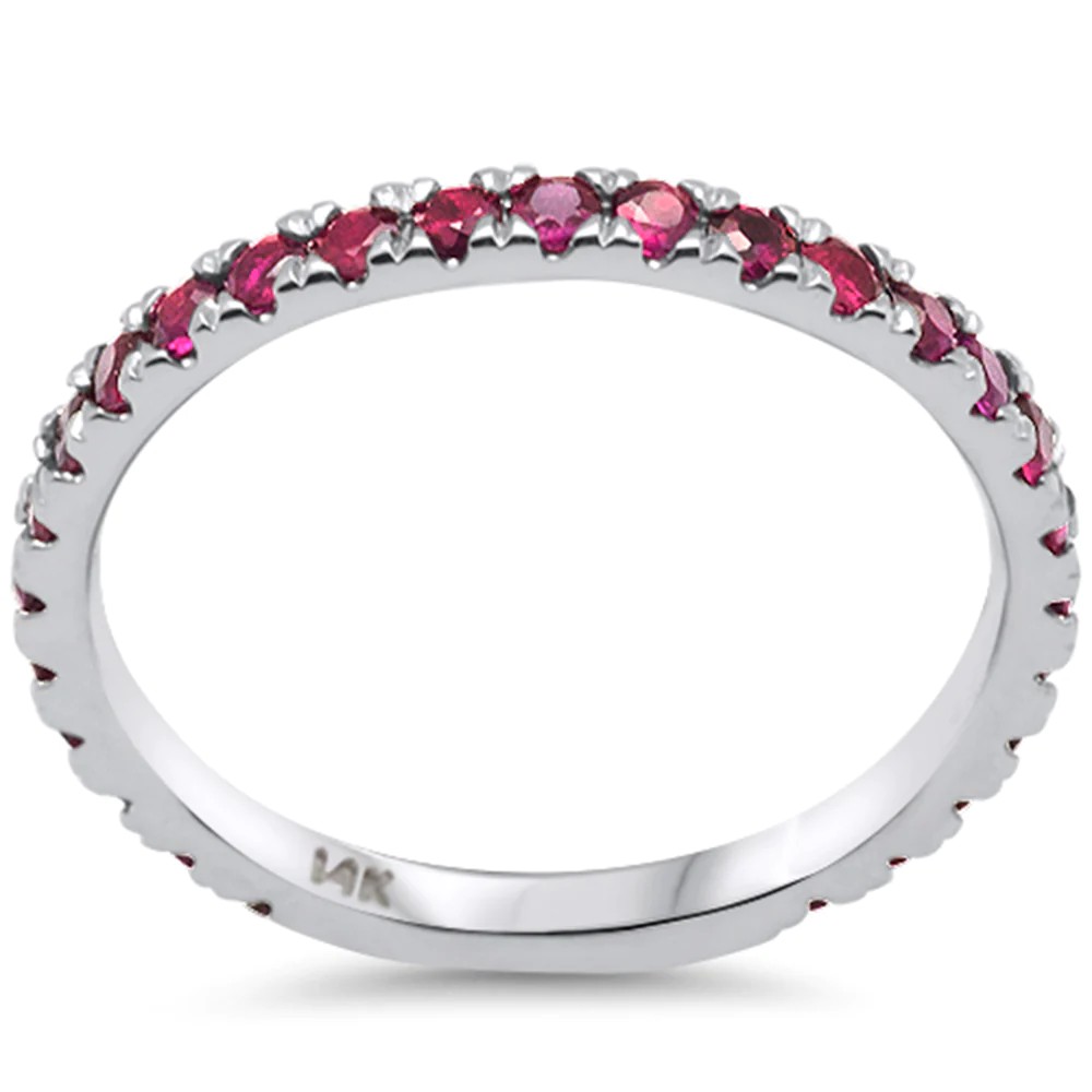 .76ct G SI 14K White Gold Natural Ruby Gemstone Ring Band Stackable Size 7
