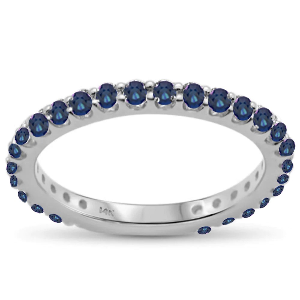 .80ct 14K White Gold Natural Blue Sapphire Gemstones Eternity Style Band Ring Size 6.5