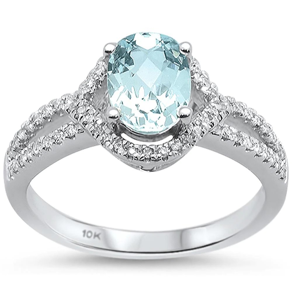 0.51cts 10k White Gold Oval Aquamarine Diamond Ring Size 6.5