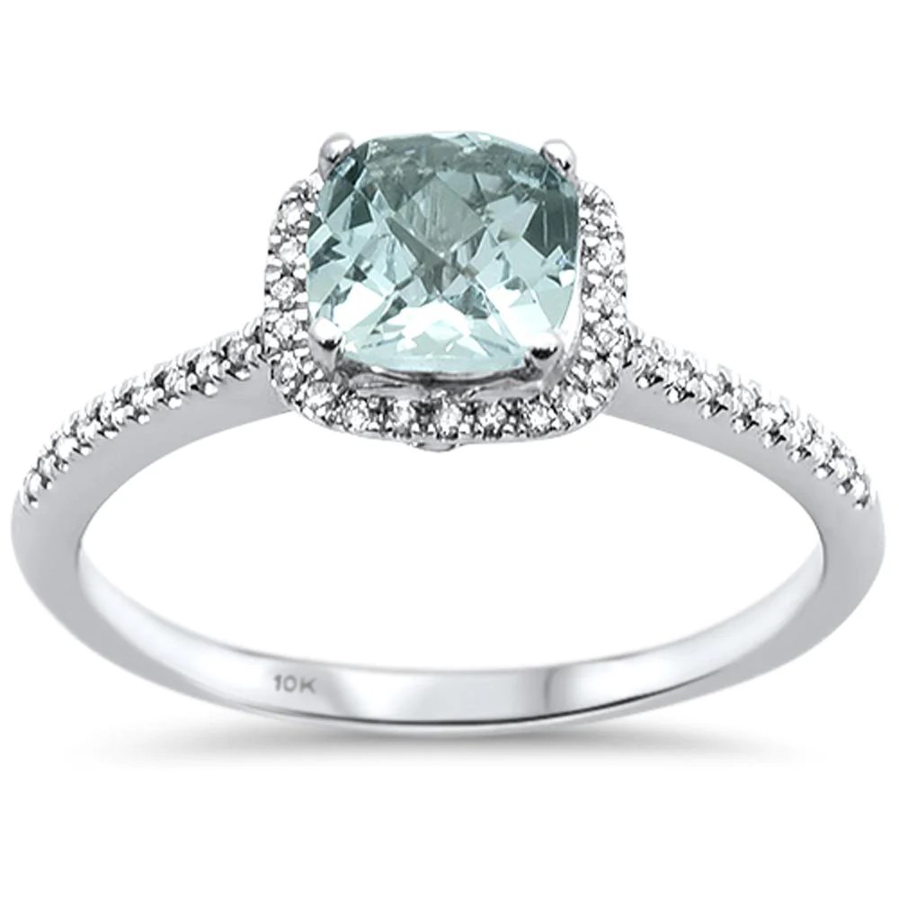 0.98cts 10k White Gold Cushion Aquamarine Diamond Ring Size 6.5