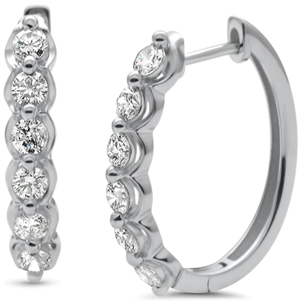 1.00ct G SI 14K White Gold 6 Stones Diamond Hoop Earrings