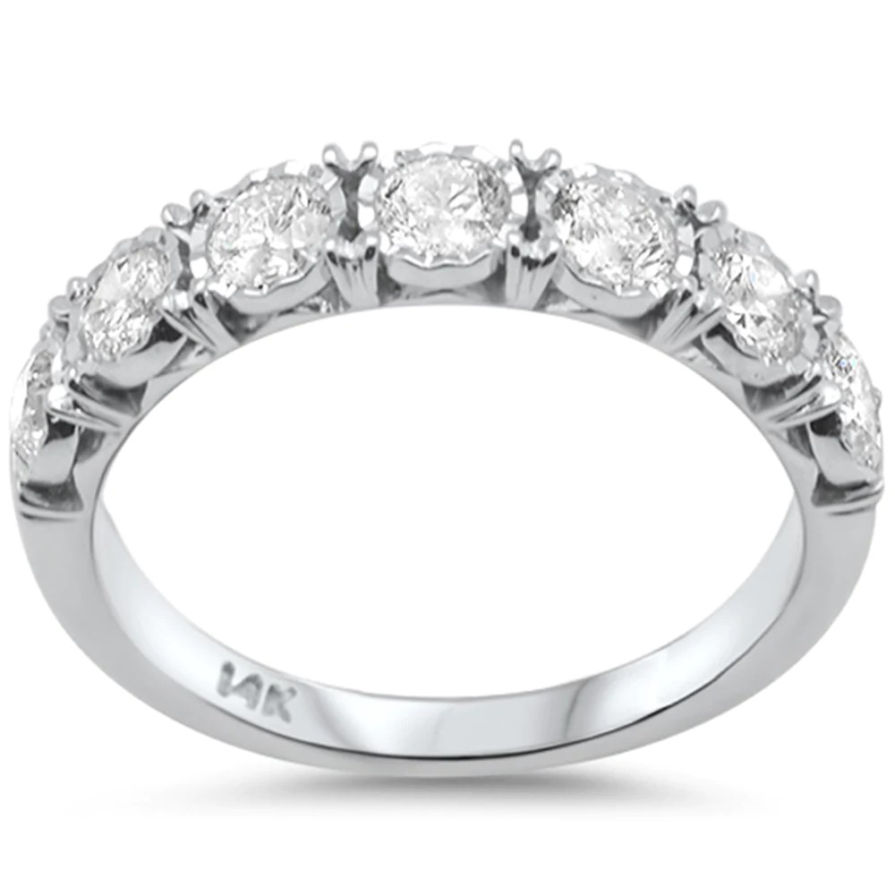 1.00ct G SI 14K White Gold Diamond 7 Stones Miracle Illusion Setting Ring Anniversary Band Size 7
