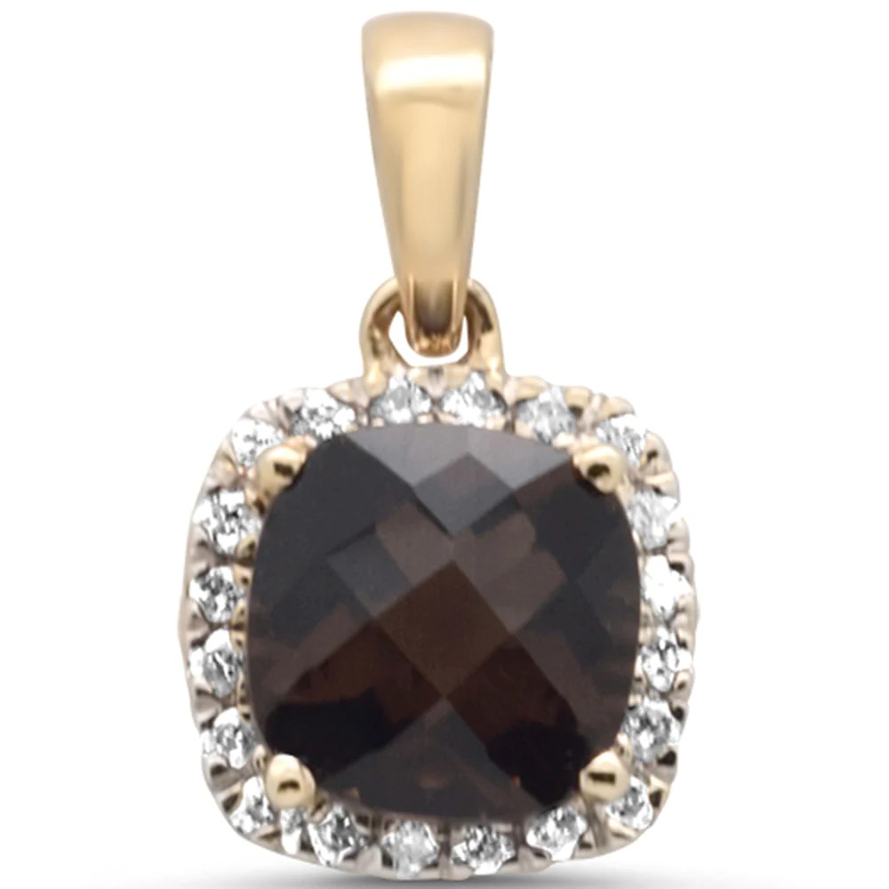 1.00ct G SI 14K Yellow Gold Diamond & Cushion Smokey Topaz Gemstone Pendant