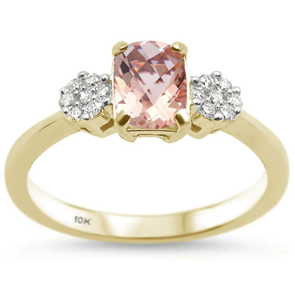 1.11cts 10k Yellow Gold Cushion Morganite & Diamond Ring