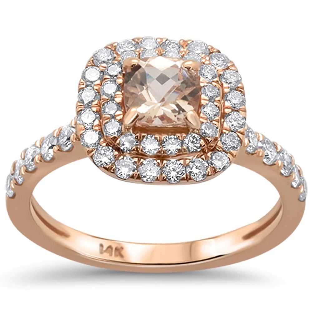 1.23ct 14kt Rose Gold Cushion Cut Morganite & Diamond Ring Size 6.5