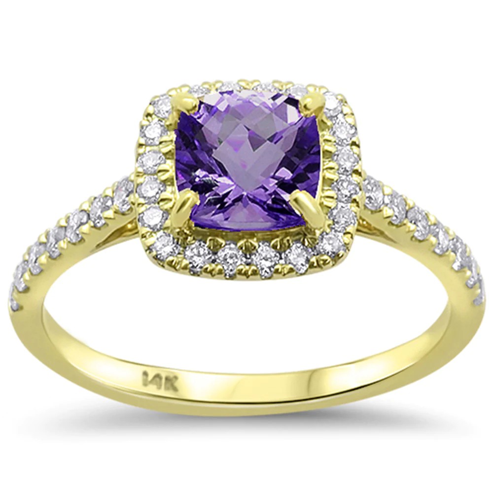 1.24ct 14kt Yellow Gold Cushion Cut Amethyst & Diamond Ring Size 6.5