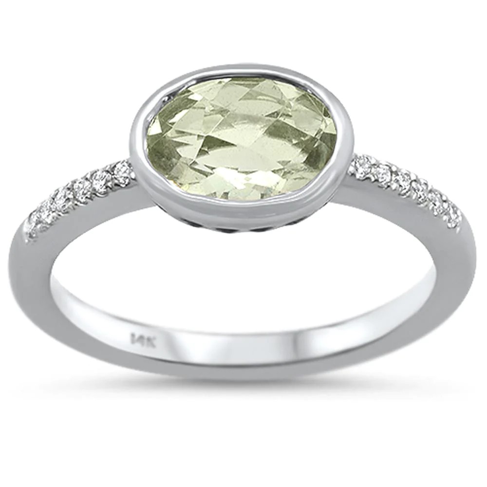 1.25cts 14k White Gold Oval Green Amethyst Diamond Ring Size 6.5