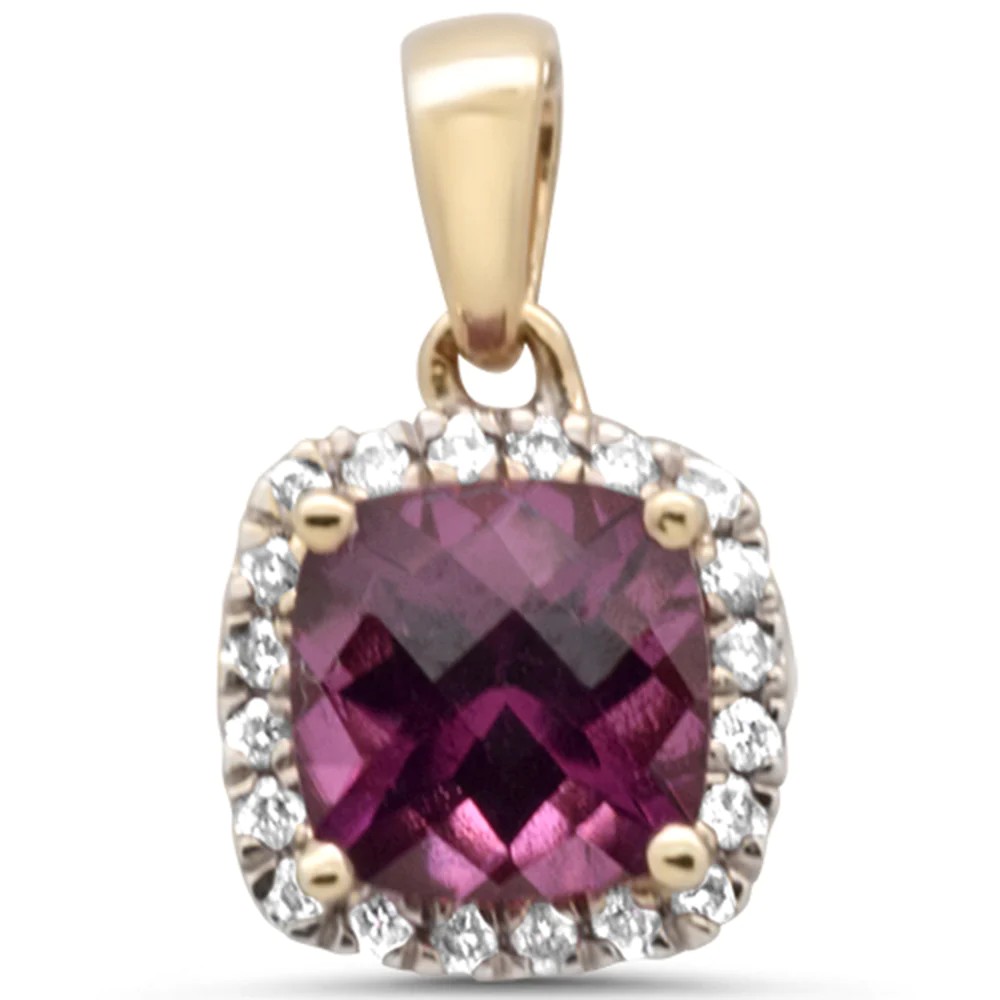1.27ct G SI 14K Yellow Gold Diamond & Cushion Rhodolite Gemstone Pendant