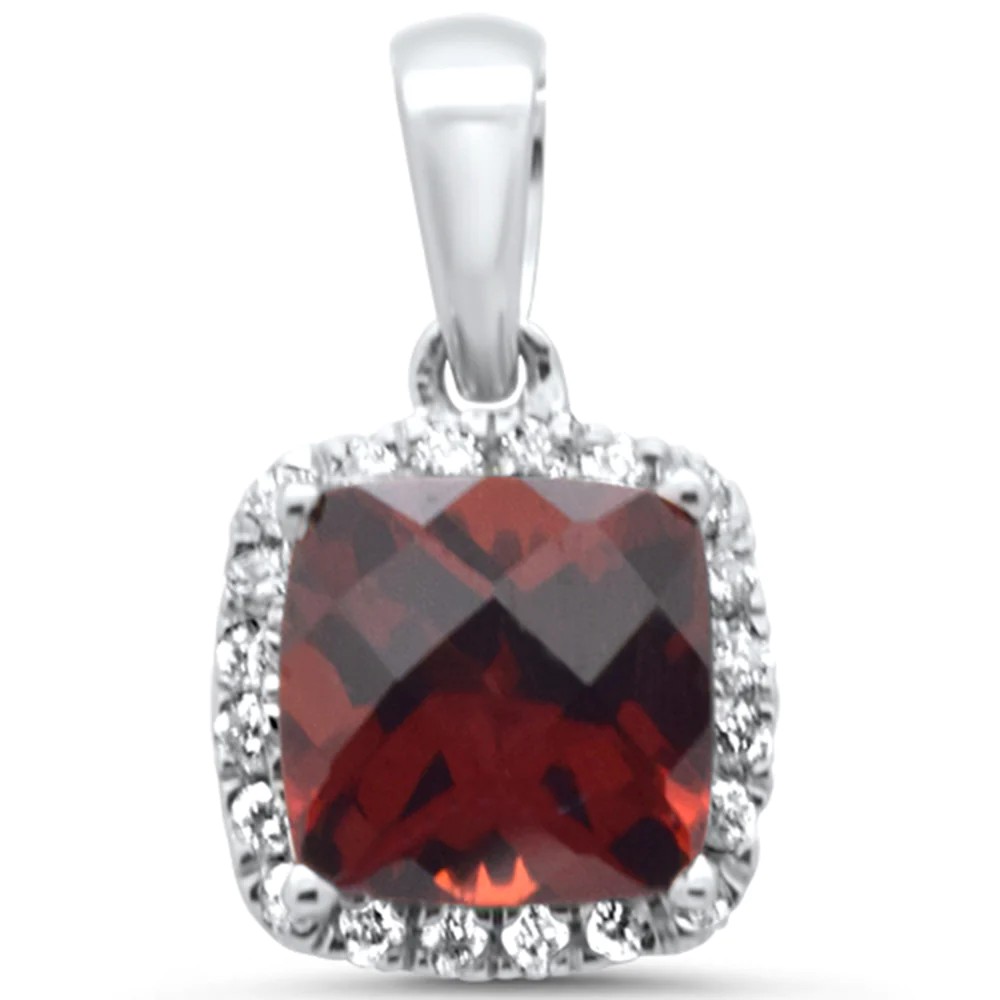 1.33ct G SI 14K White Gold Diamond & Cushion Garnet Gemstone Pendant