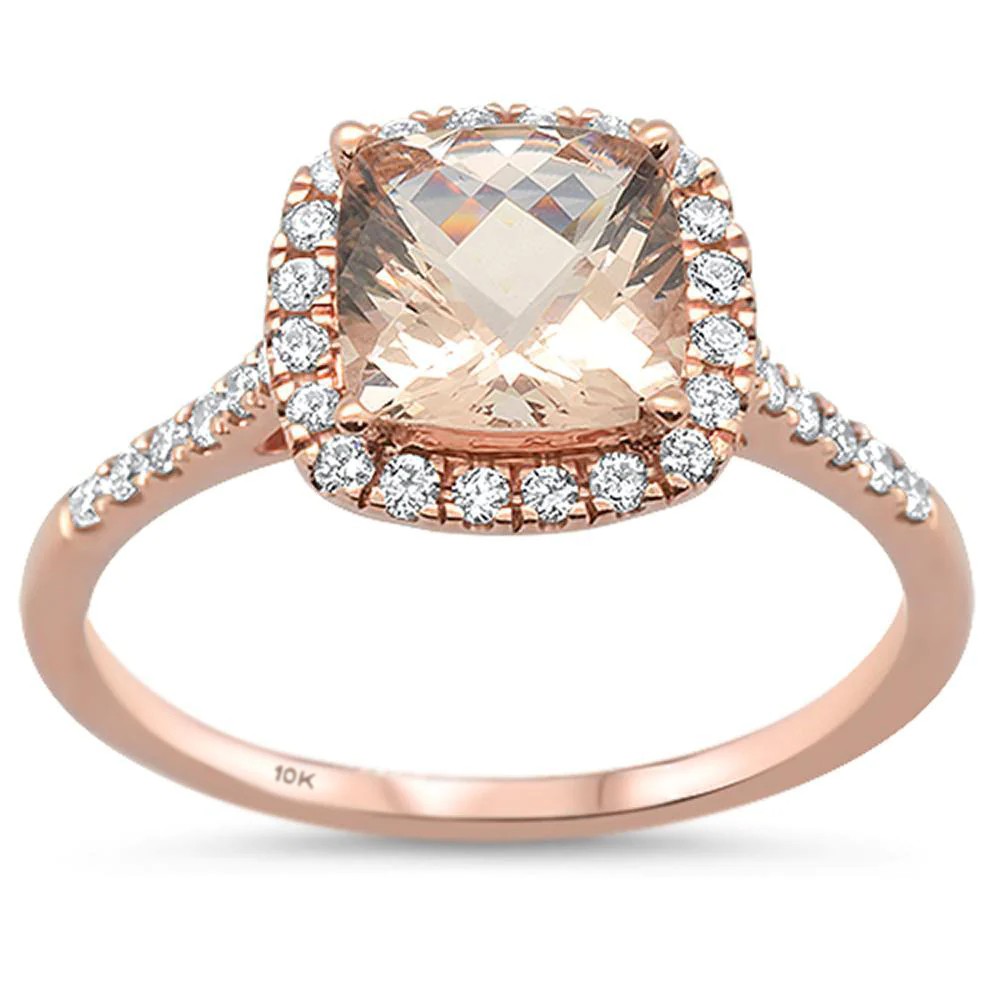 1.35cts 10k Rose Gold Cushion Morganite & Diamond Ring