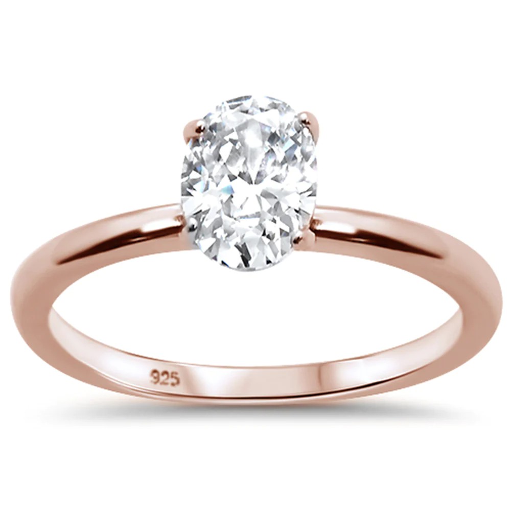 1.50ct 8x6mm Rose Gold Plated Oval Cubic Zirconia .925 Sterling Silver Solitaire Engagement RingSizes 4-9