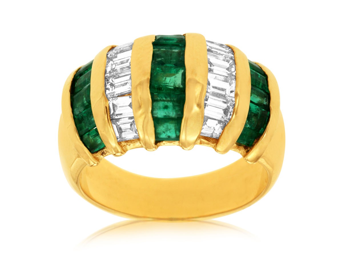 1.50cts Emerald and 1.00cts Diamonds 14k Yellow Gold Ring