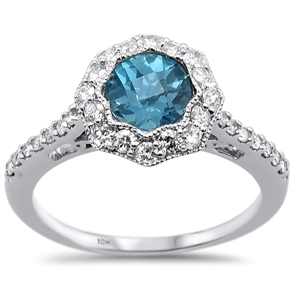 1.53cts 10k White Gold Round Blue Topaz Diamond Ring Size 6.5