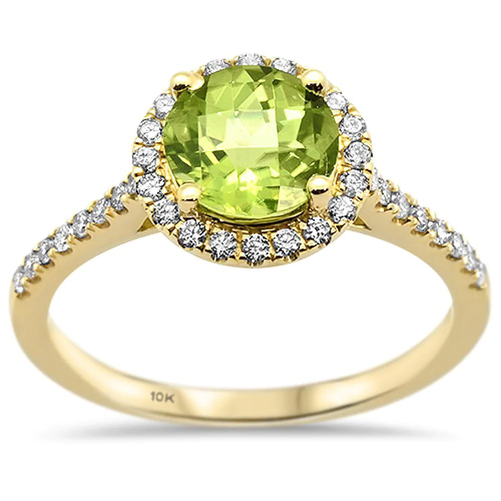 1.67cts 10k Yellow Gold Round Green Peridot & Diamond Ring