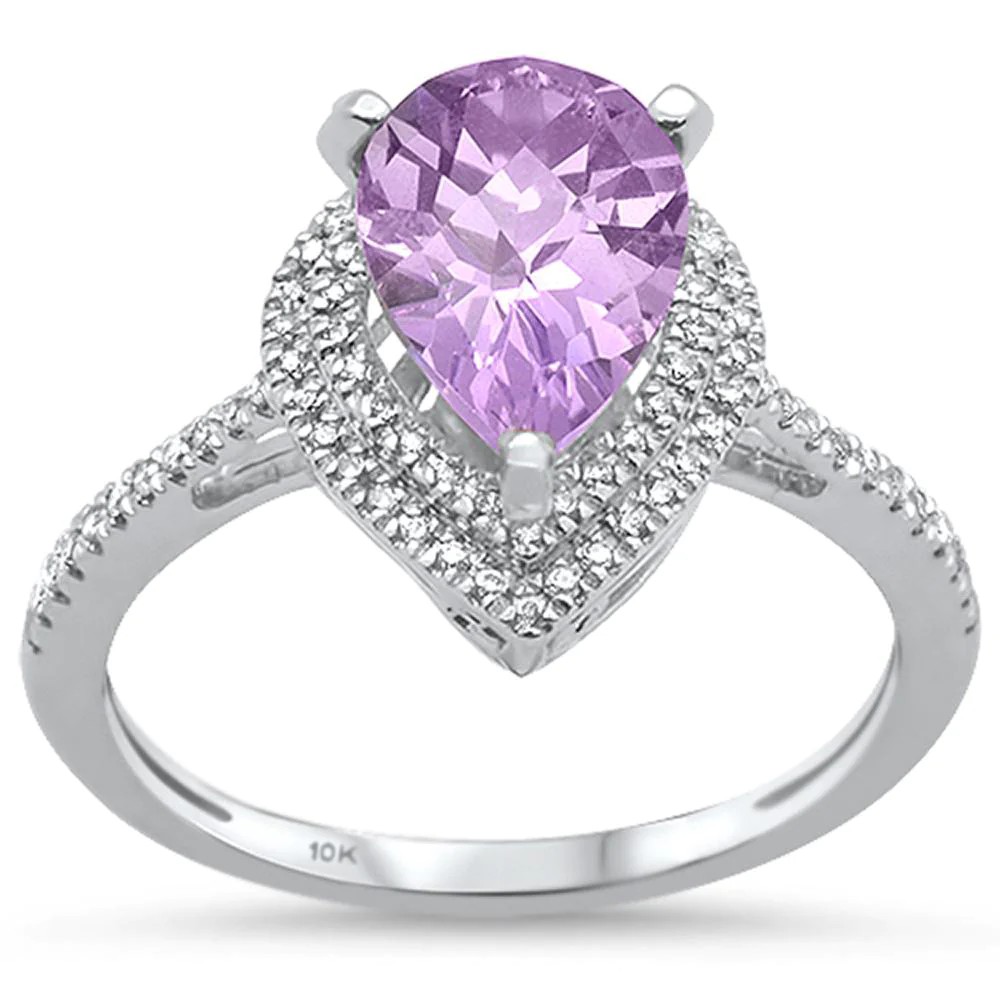 1.83cts 10k White Gold Pear Shape Amethyst Diamond Ring Size 6.5