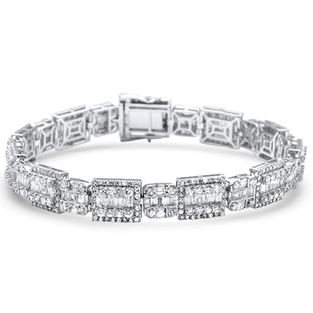 11.0ct G SI 14K White Gold Round & Baguette Diamond Tennis Bracelet
