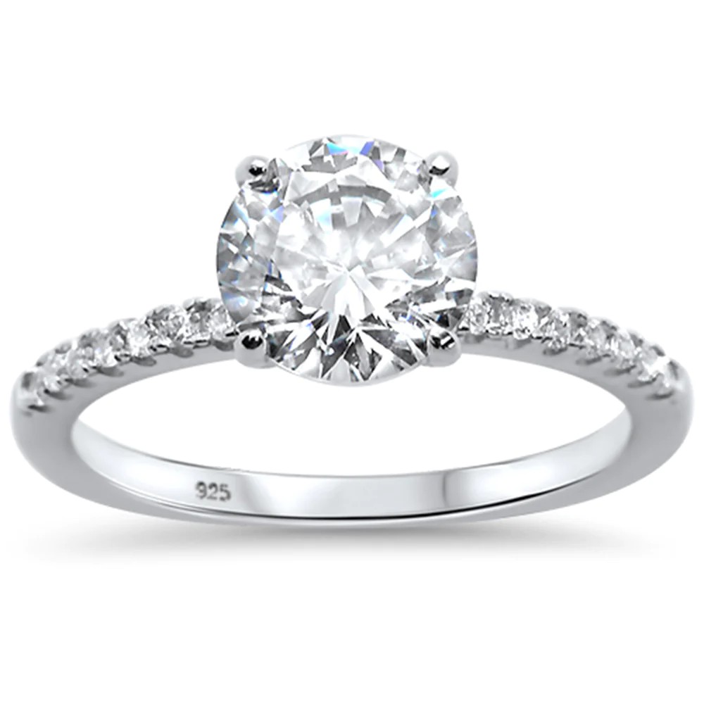 2.00ct 8mm Round Cubic Zirconia .925 Sterling Silver Solitaire Engagement RingSizes 4-11