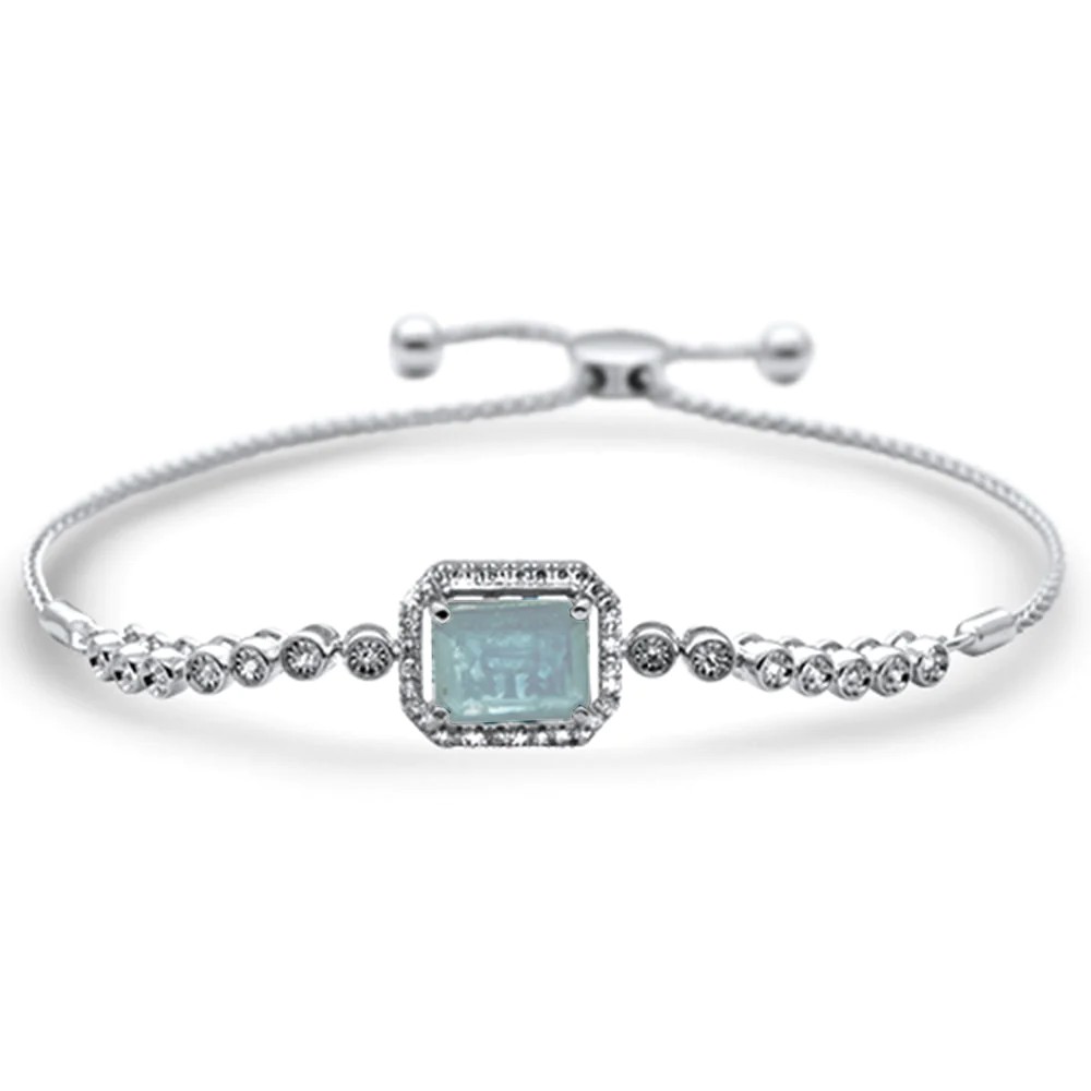 2.00ct G SI 14K White Gold Adjustable Diamond & Natural Aqua Bola Bracelet