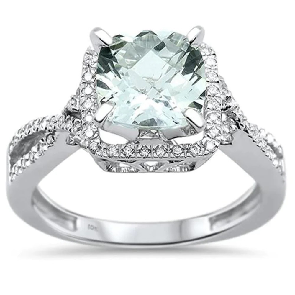 2.04cts 10k White Gold Cushion Cut Aquamarine & Diamond Ring