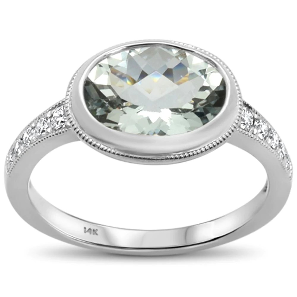 2.11cts 14k White Gold Oval Green Amethyst Diamond Ring Size 6.5