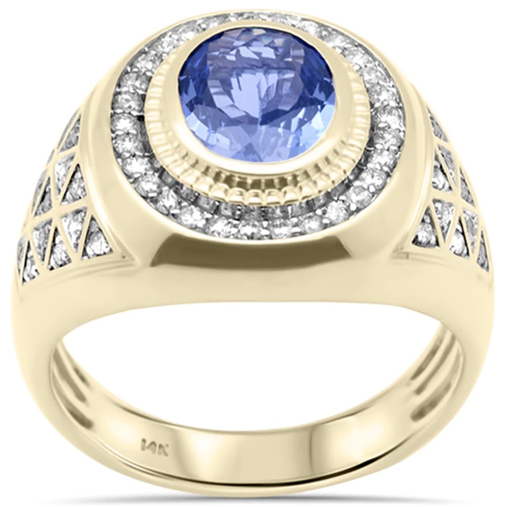 2.76ct G SI 14K Yellow Gold Natural Tanzanite Gemstone Men's Ring Band Size 10