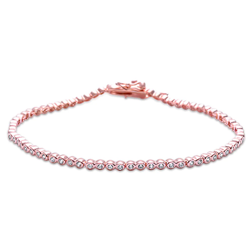 • 2MM Round Rose Gold Plated Round Bezel Set Cz .925 Sterling Silver Bracelet