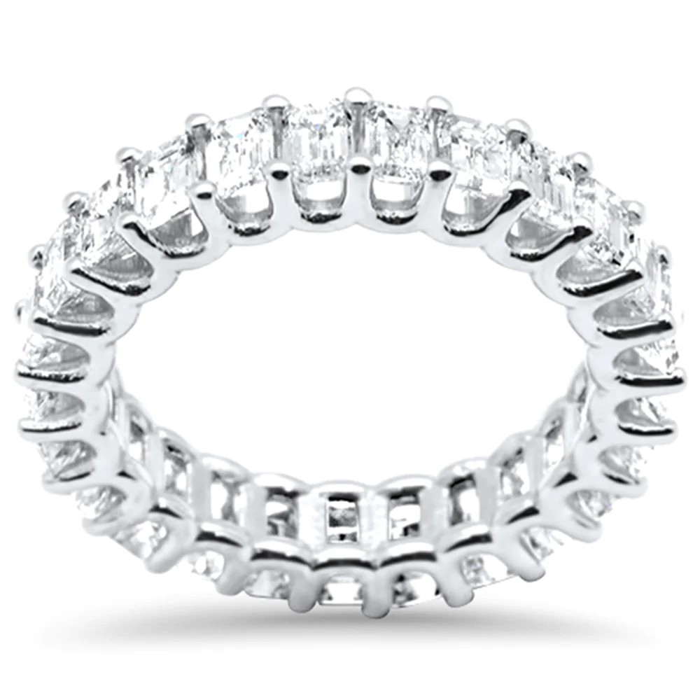 3.63ct G SI 18K White Gold Emerald Cut Diamond Eternity Ring Size 6.5