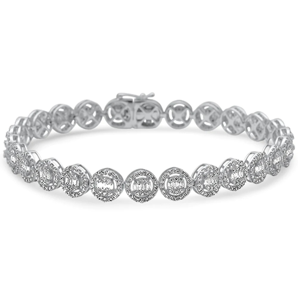 3.65ct G SI 14K White Gold Diamond Round & Baguette Tennis Bracelet 8" Long