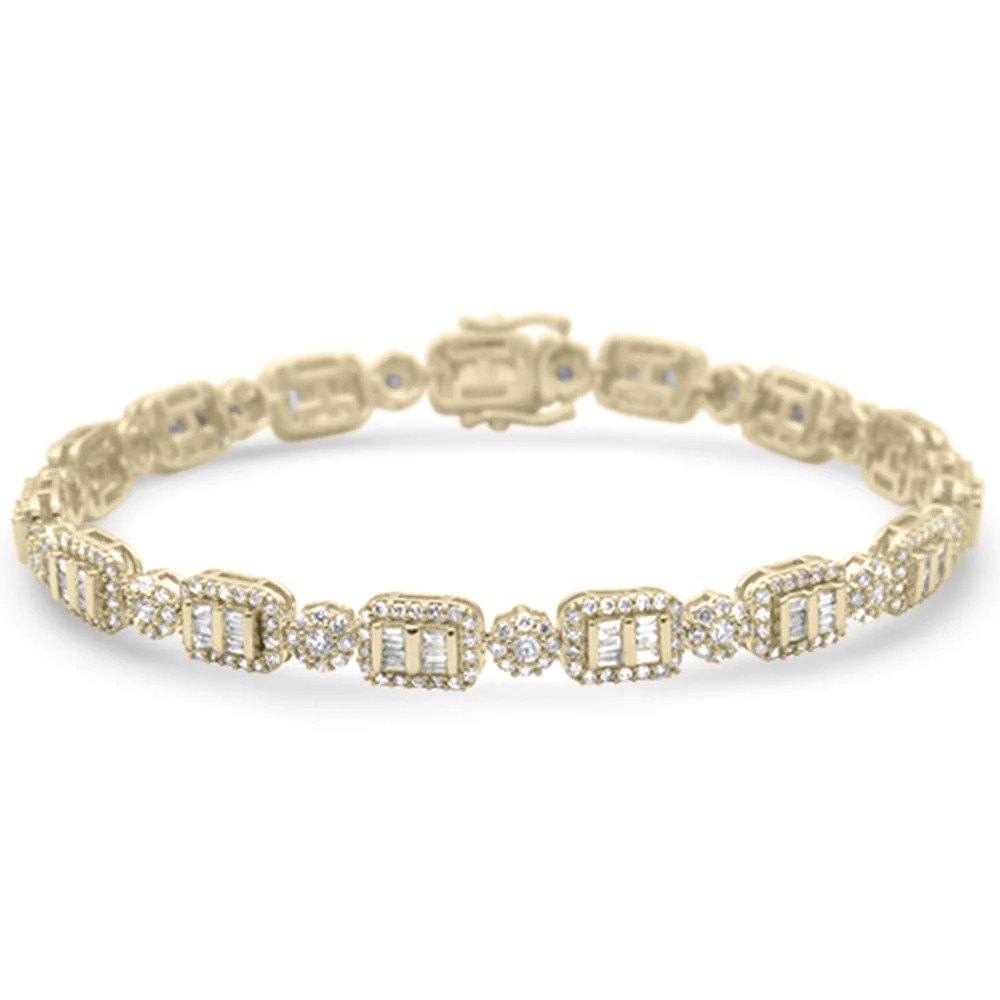 4.75ct G SI 14K Yellow Gold Diamond Round & Baguette Iced Out Tennis Bracelet 8" Long