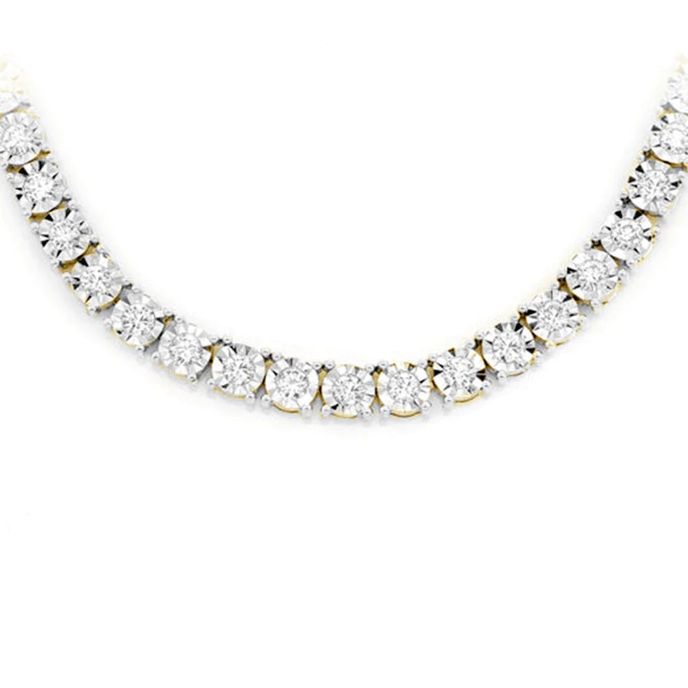 4.99ct G SI 14K Yellow Gold Tennis Miracle Illusion Necklace 22"